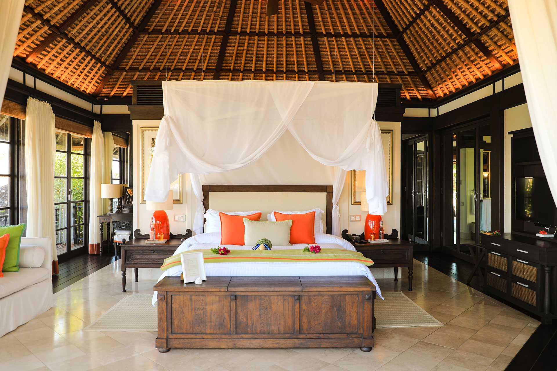 Das Herzstück der Insel befindet sich neben dem Main Pool, der Rezeption und der Bibliothek. Hier schlägt auch das kulinarische Herz. Auf den Tisch kommen frische Gerichte, die aus ca. 80 % eigens angebauter Zutaten bestehen und einen Hauch Madagaska mitbringen. Genießen Sie exzellente Küche den ganzen Tag!
