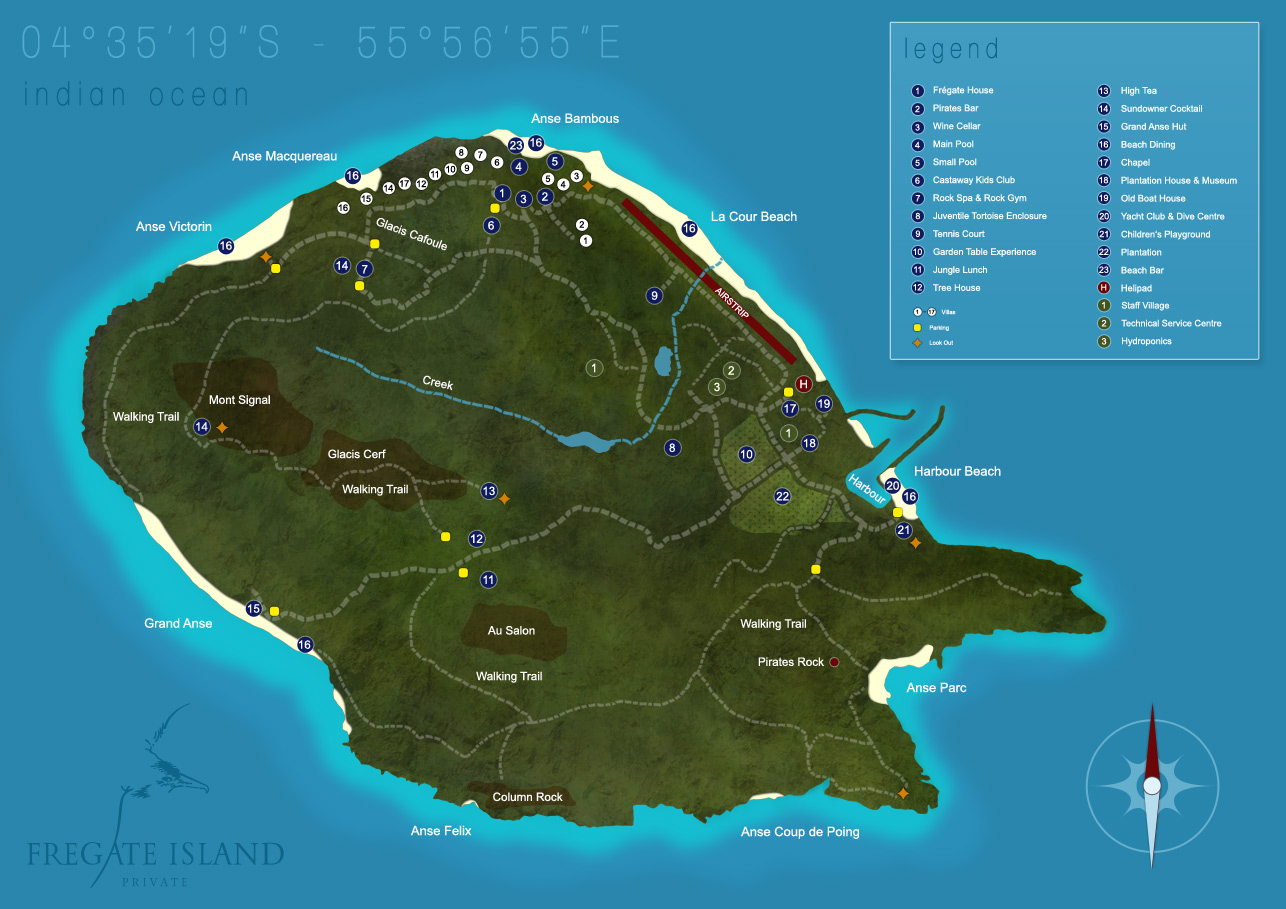 Mit dem Hubschrauber circa 20 Flugminuten von „Mahé" entfernt bietet Ihnen das 3 km² große Eiland sieben traumhafte Sandstrände, eine artenreiche Flora und Fauna sowie unberührte Natur von ihrer schönsten Seite. Um das Wohl der maximal 32 Gäste der exklusive Villenanlage kümmern sich rund 150 Angestellte – beste Voraussetzungen also für einen exklusiven Urlaub in tropischer Traumkulisse. Sich wie im Paradies zu fühlen, wird Ihnen jedenfalls leicht gemacht. Die Insel wurde vom Internationalen Reisemagazin mehrfach zur „schönsten Insel der Welt“ gewählt. Nachhaltigkeit, Sicherheit und guter Service werden im „Frégate Island Private" großgeschrieben.