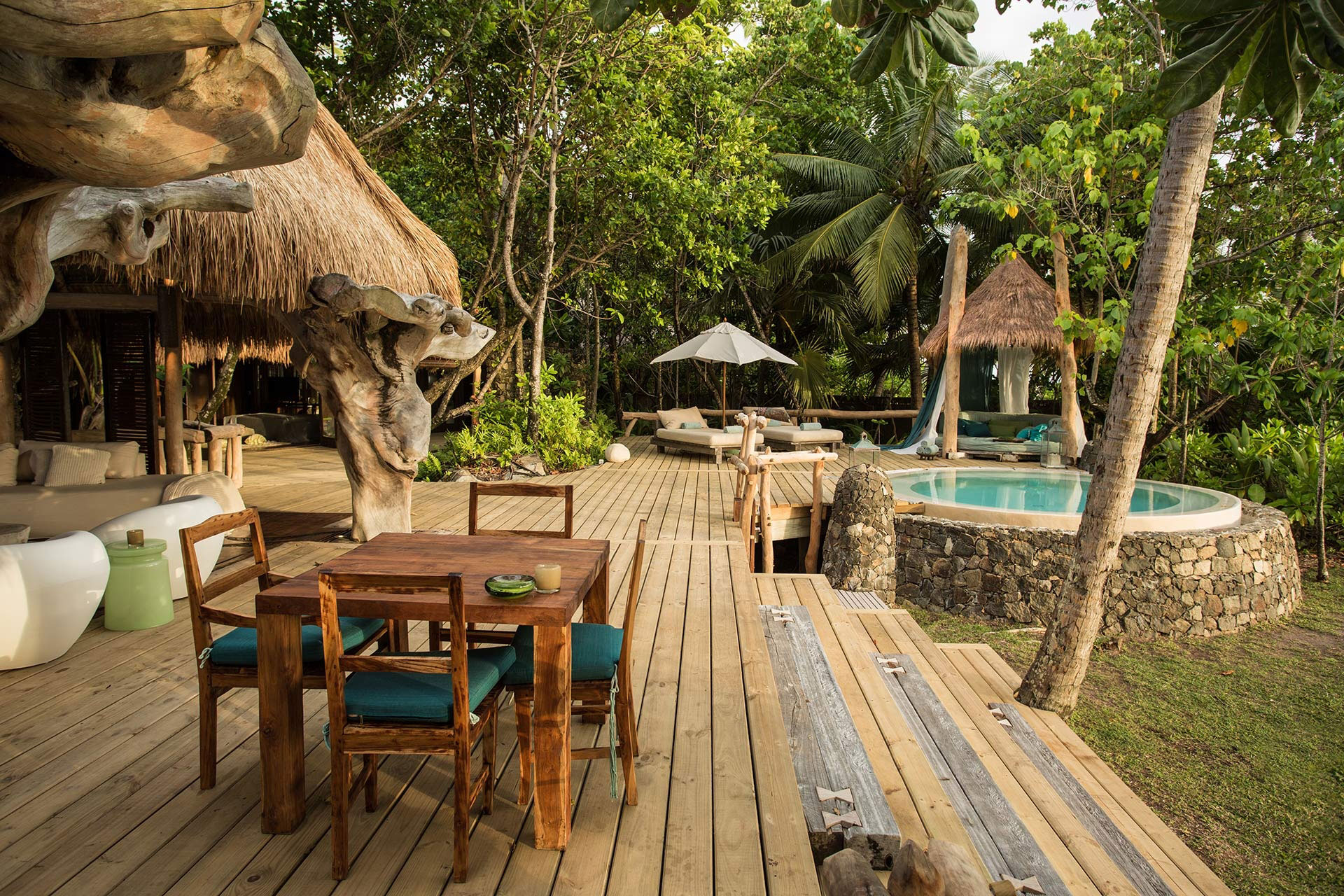Äußerst harmonisch eingebettet in die natürliche Vegetation liegen diese Villen entland des East Beach, der fast eine ganze Länge der Insel einnimmt. Mit rustikalem Hauch, gewundenen Formen und handgefertigten Möbelstücken präsentieren sich die Villen mit direktem Zugang zum Strand und mit extrem viel Platz.