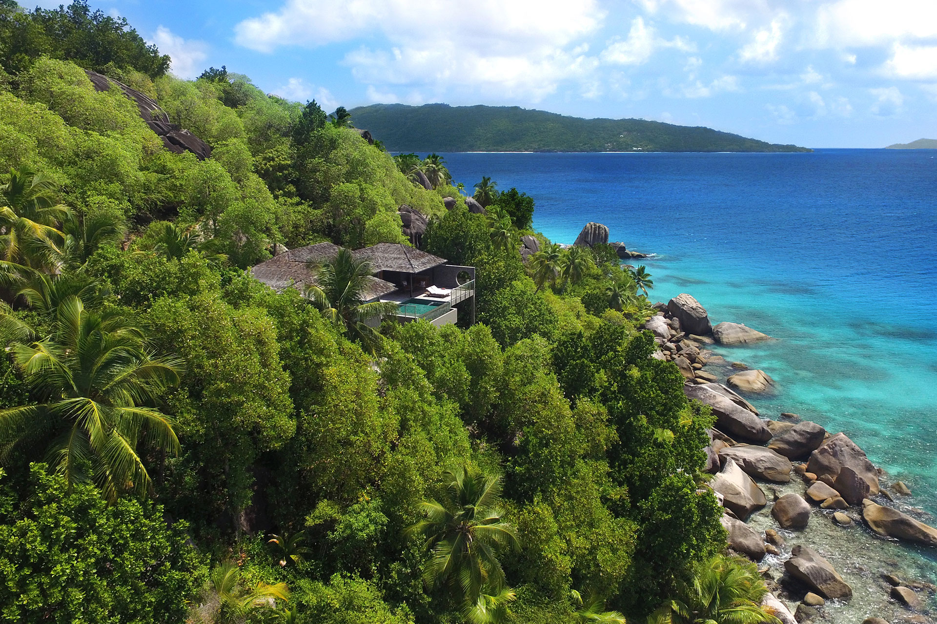 Das Reiseziel für Pärchen. Auf dieser privaten Insel haust zwischen pittoresken Granitfelsen, dramatisch schönen Stränden einzig das Resort. Und sonst niemand.